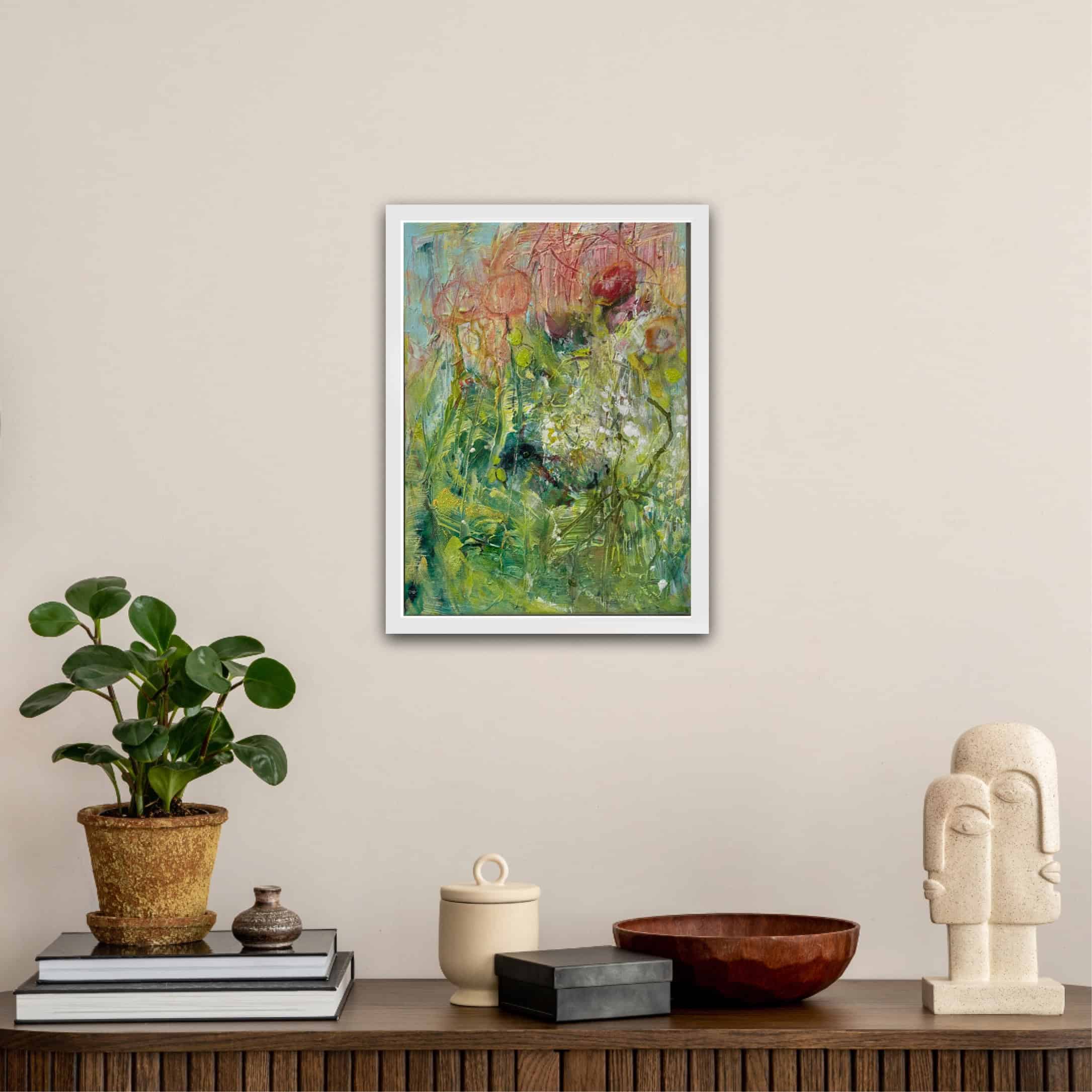 Denna färgglada abstrakta tavla är perfekt för dig som söker unika och uttrycksfulla konstverk i mindre format. Tavlan passar utmärkt på en mindre vägg, i ett galleriarrangemang, eller som en färgklick i ditt hem eller arbetsrum. Med sin livfulla färgpalett och moderna uttryck sprider tavlan både glädje och energi till sin omgivning.