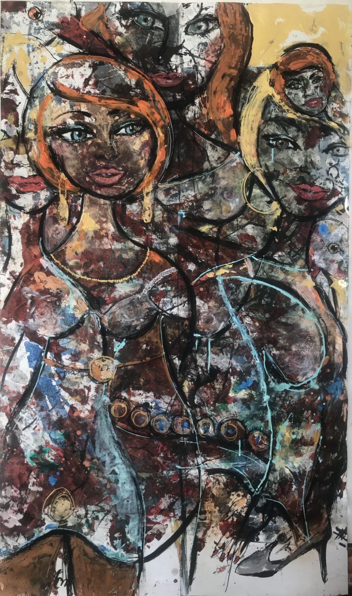 Tavlan med titeln Konst – Förberedelser inför Catwalk passar motivet eftersom jag vill spegla kvinnor i abstrakt / fantasy stil där jag medvetet slarvigt målat dragen av feminina kvinnokroppar och underkläder.