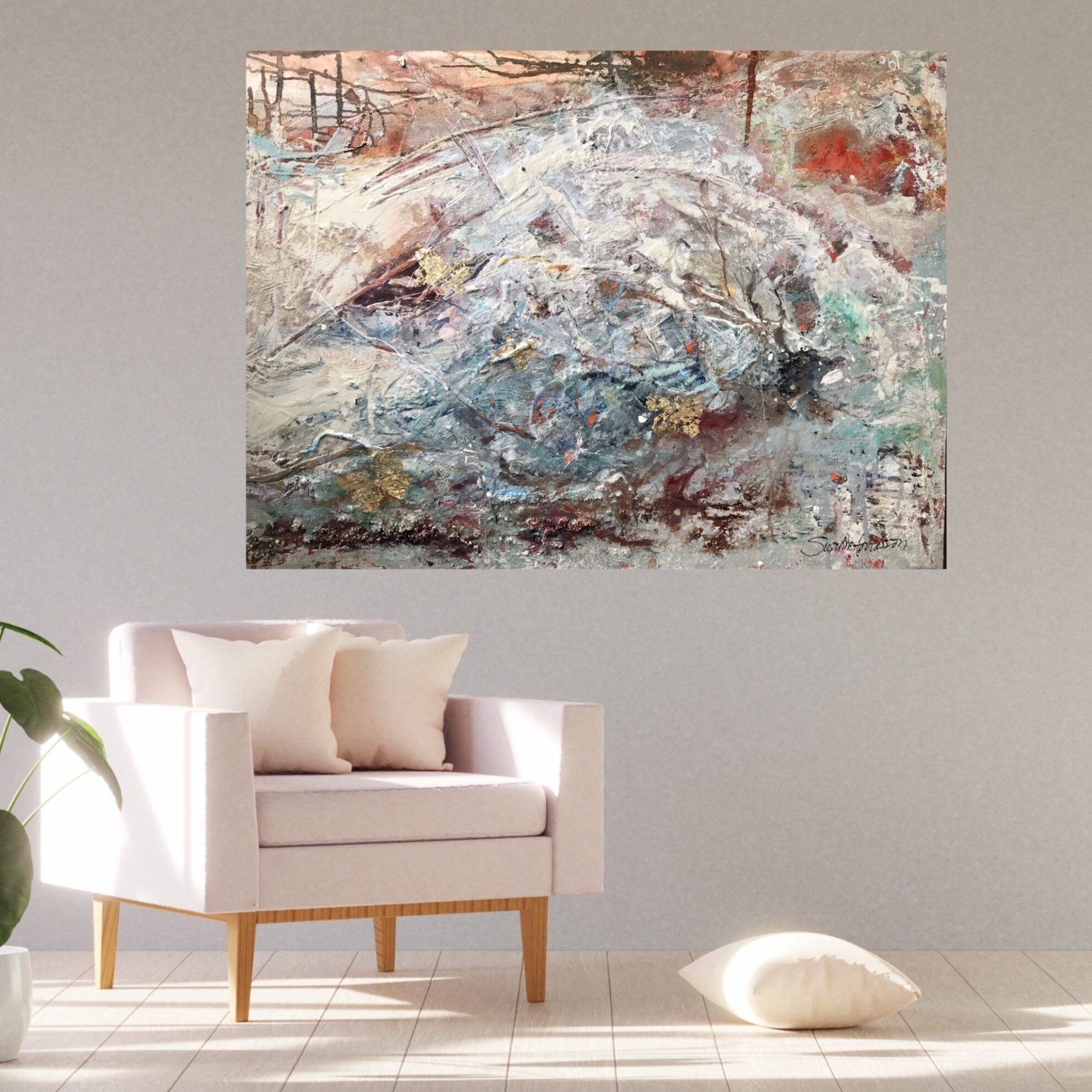 En originalmålning där jag velat skapa känslan av liv och rörelse med tankar på vårens återkomst.