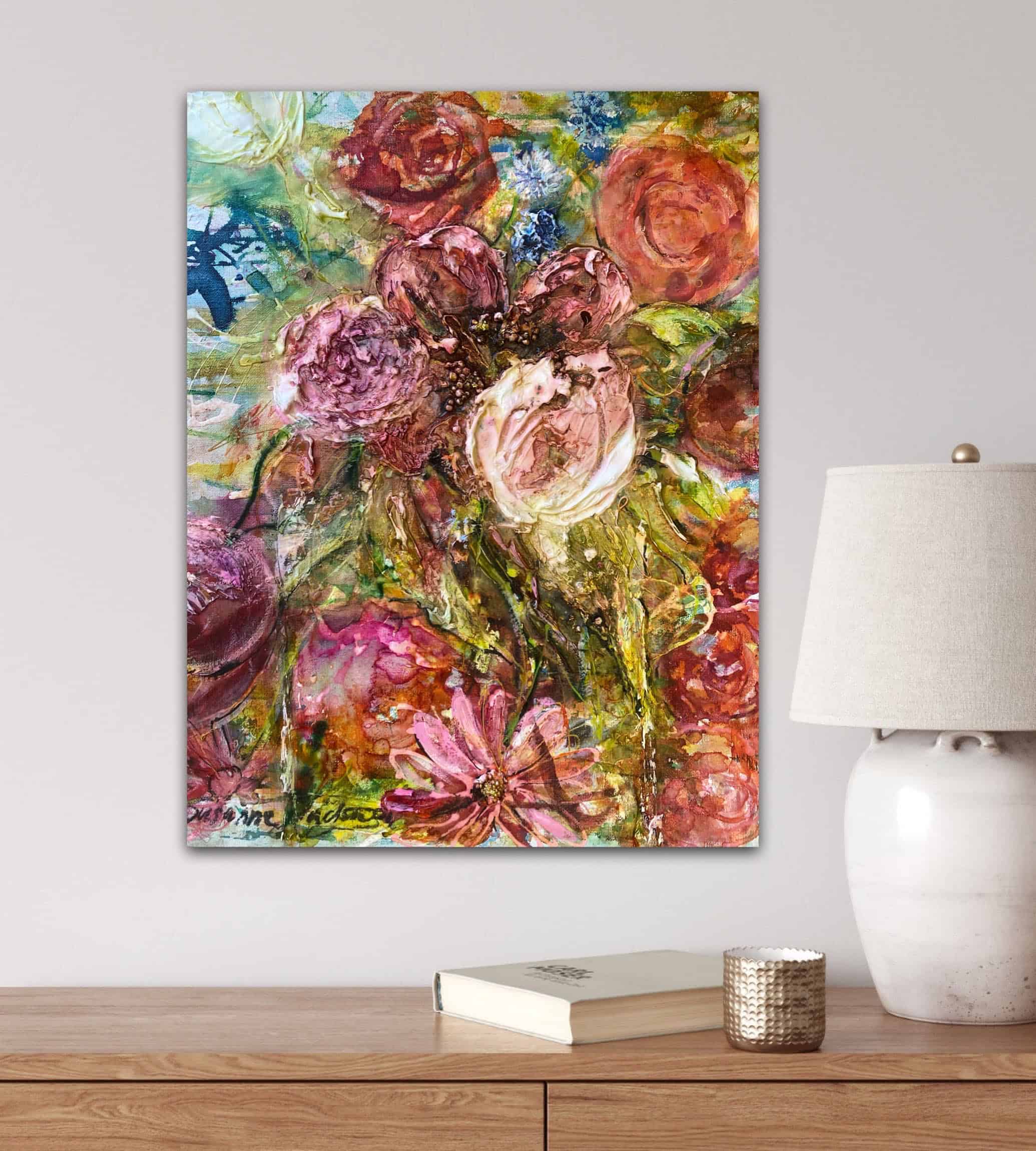 När du väljer en tavla med blommor och struktur från mig, får du inte bara ett vackert konstverk utan också en personlig touch som reflekterar min passion för konst. Jag skapar tavlor som passar både moderna och klassiska miljöer och som ger ett professionellt och inbjudande intryck.