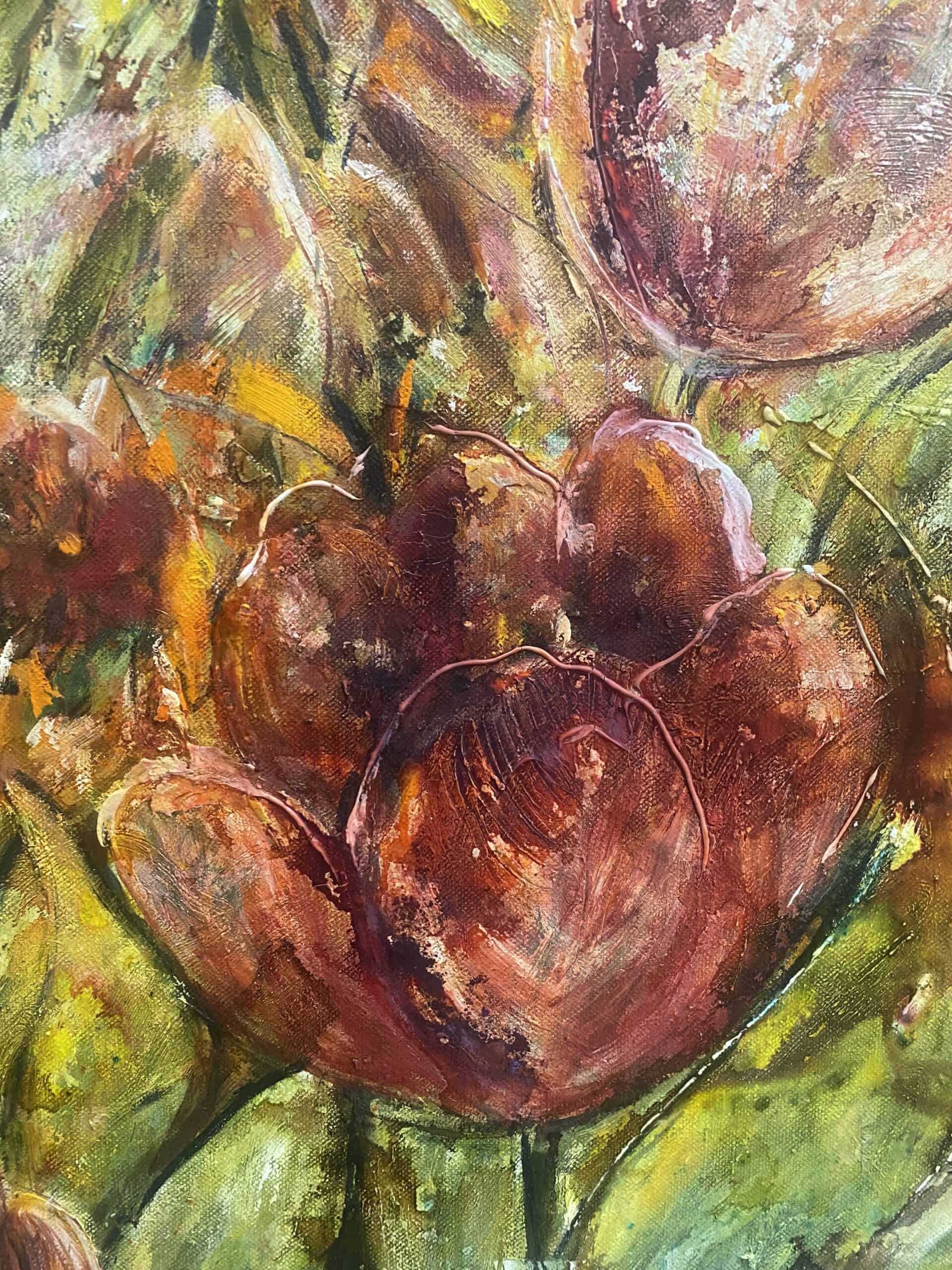 Konststilen jag målat i är mer åt det moderna genom att blanda naturalistiska detaljer med flödiga, abstrakta element. Detta ger tavlan en unik dynamik och gör att den känns både tidlös och samtida.