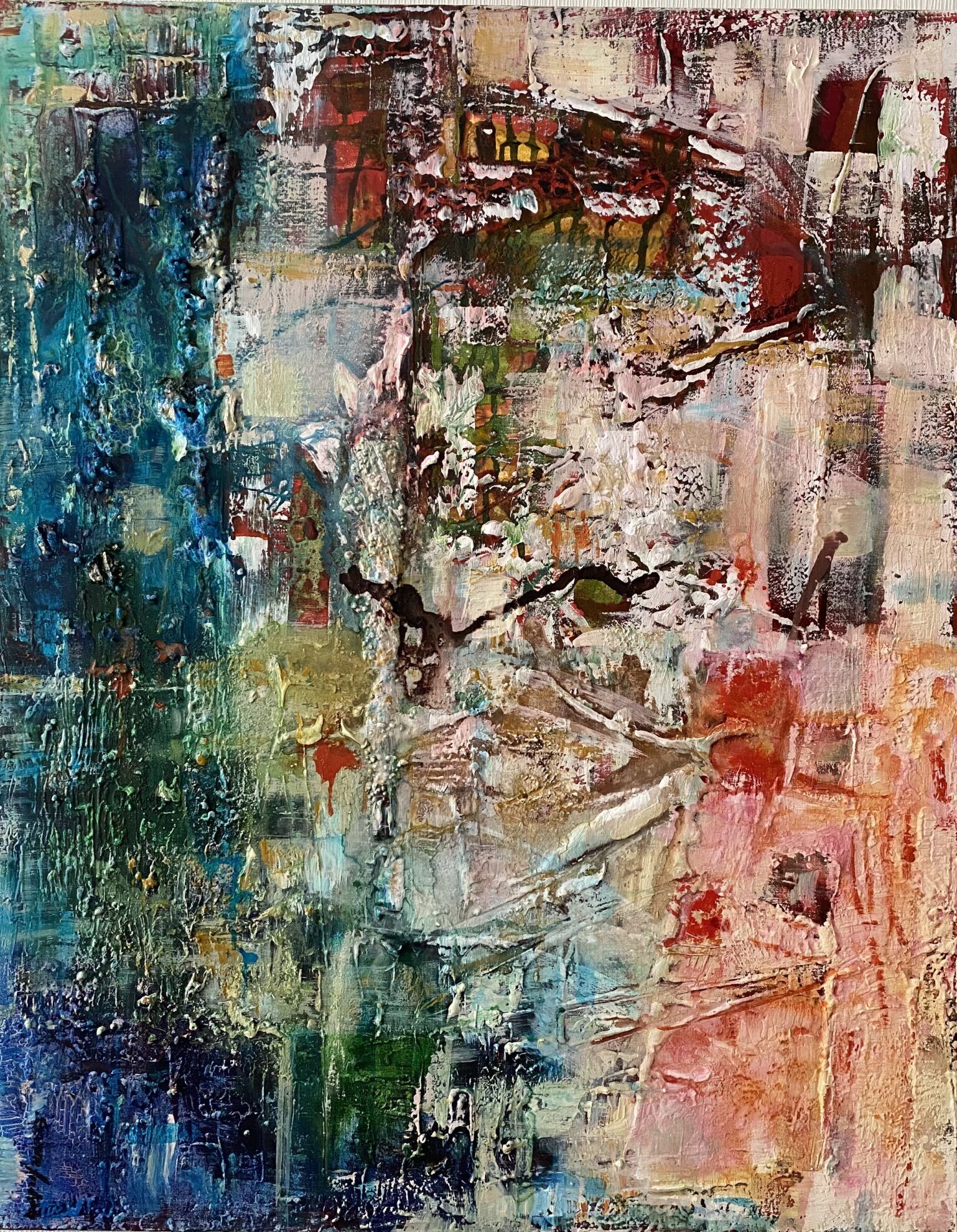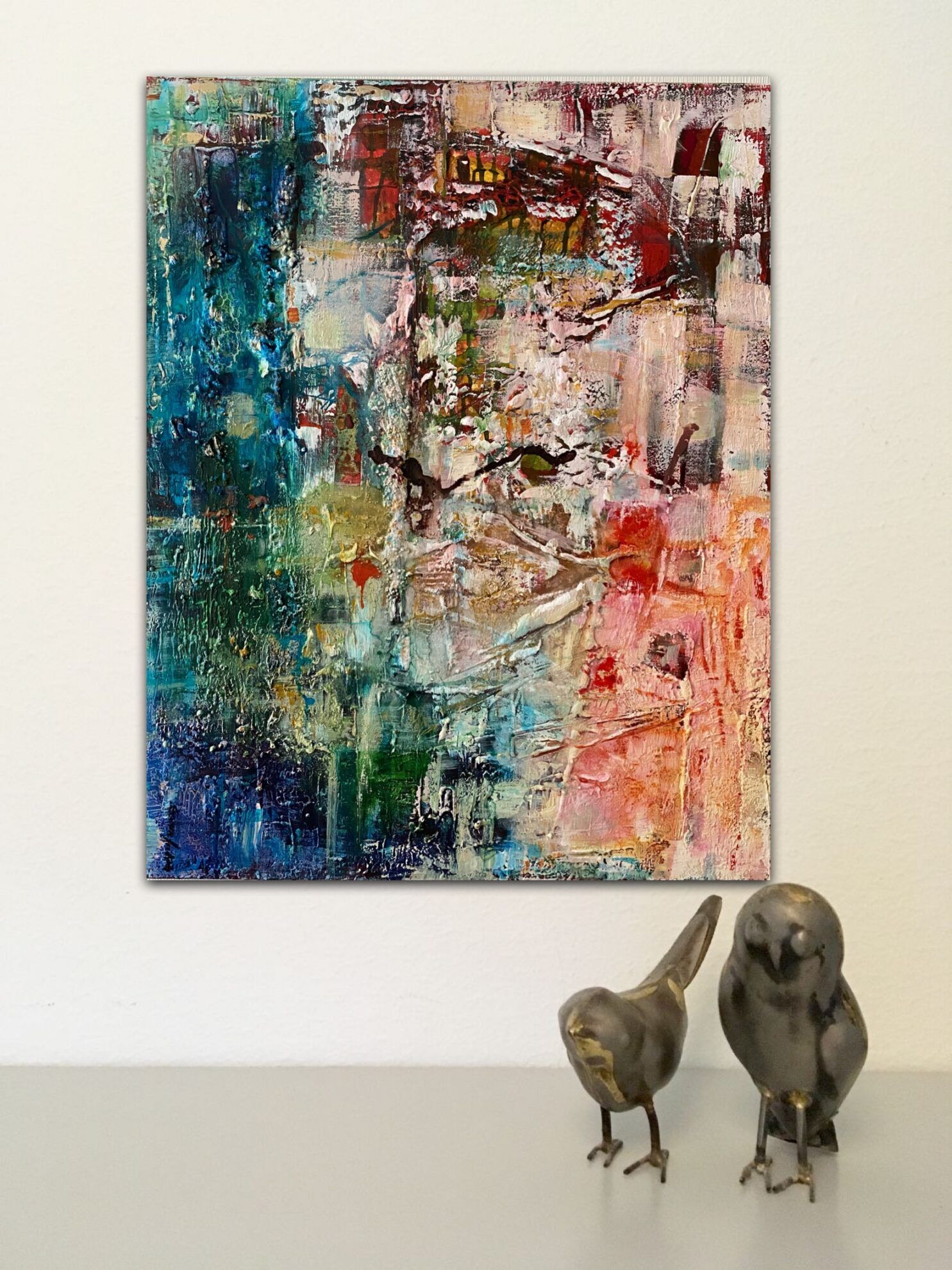 Denna målning är en nog figurativ tavla som faktiskt går att vända åt olika håll för att hitta nya detaljer i den.