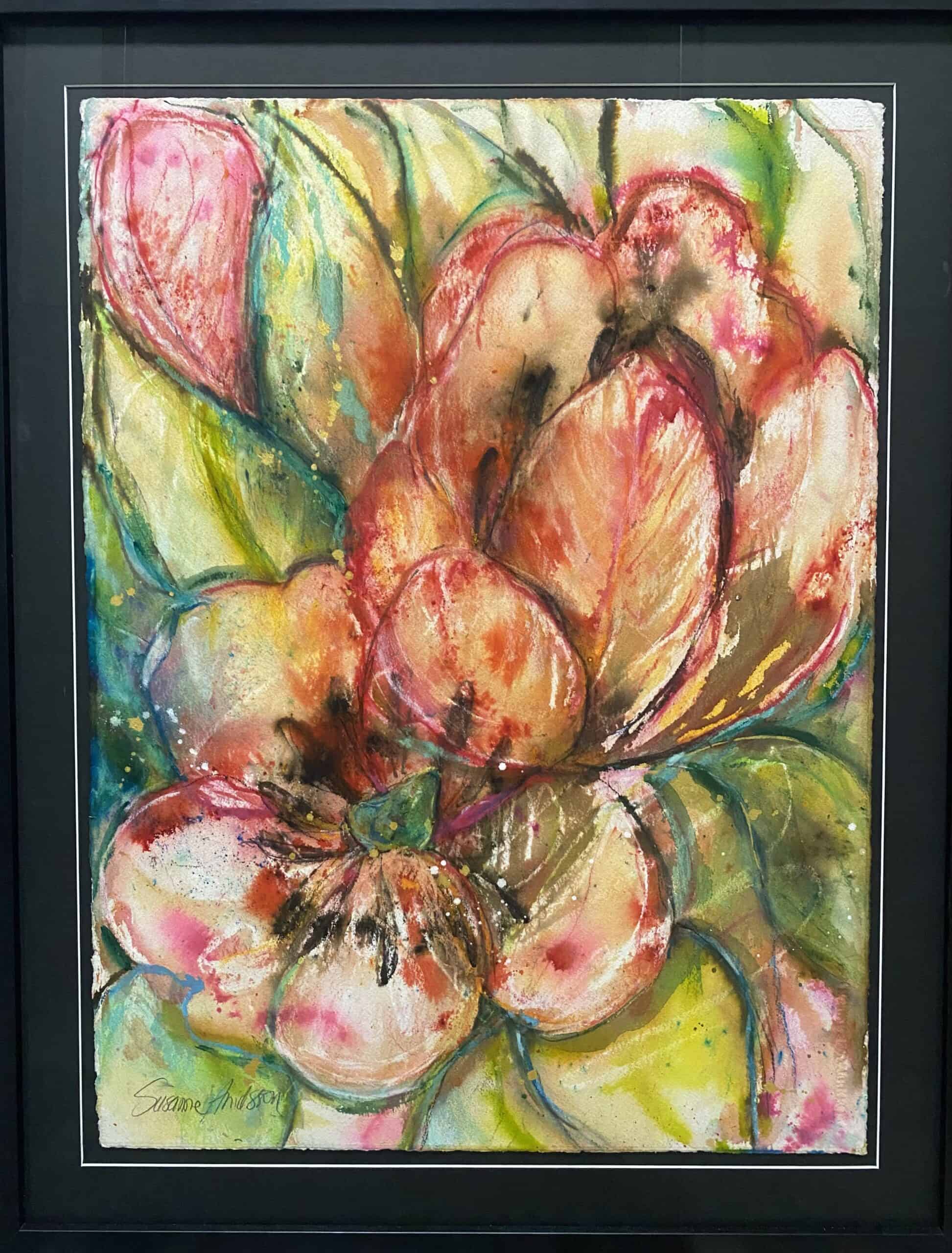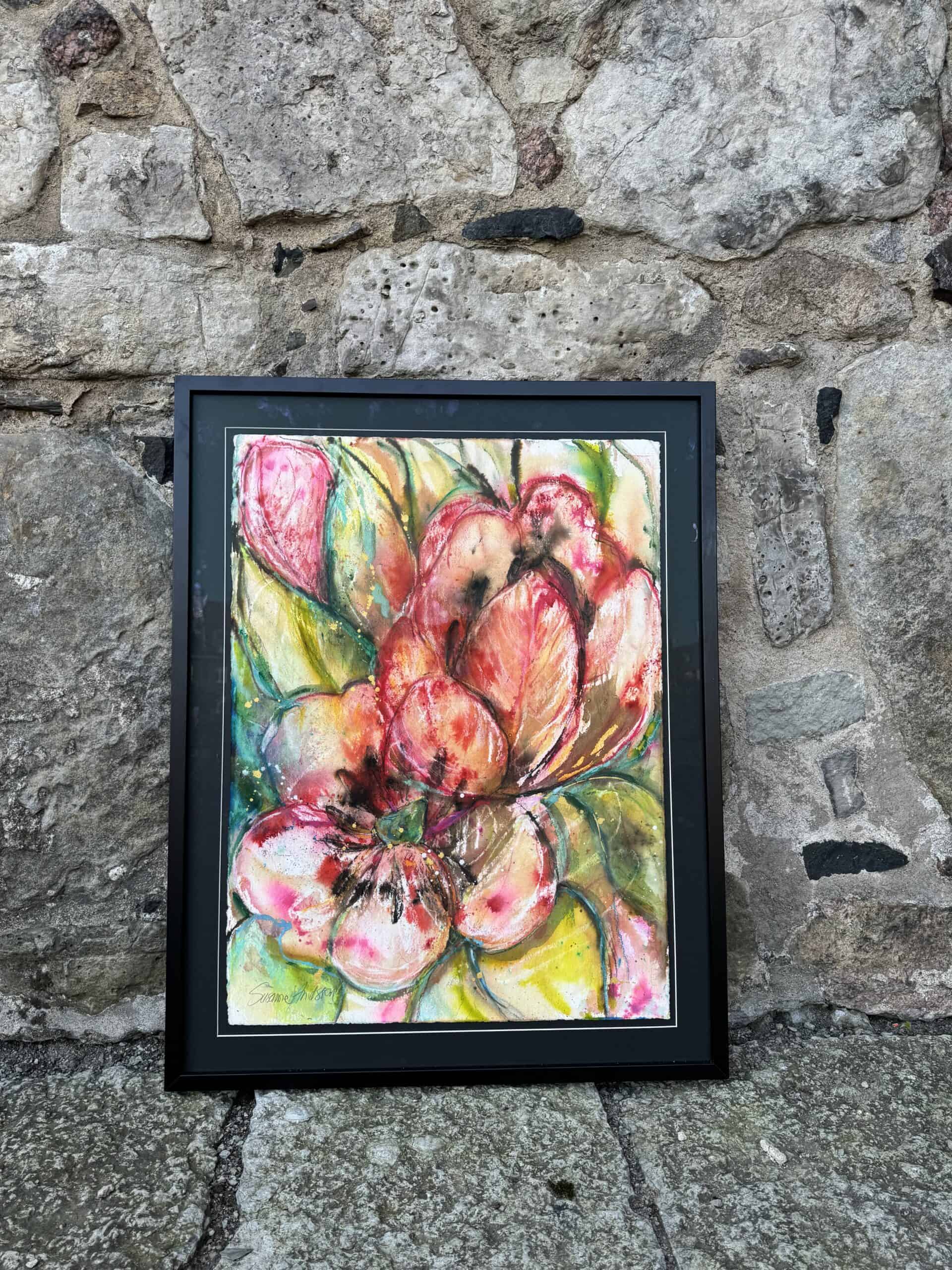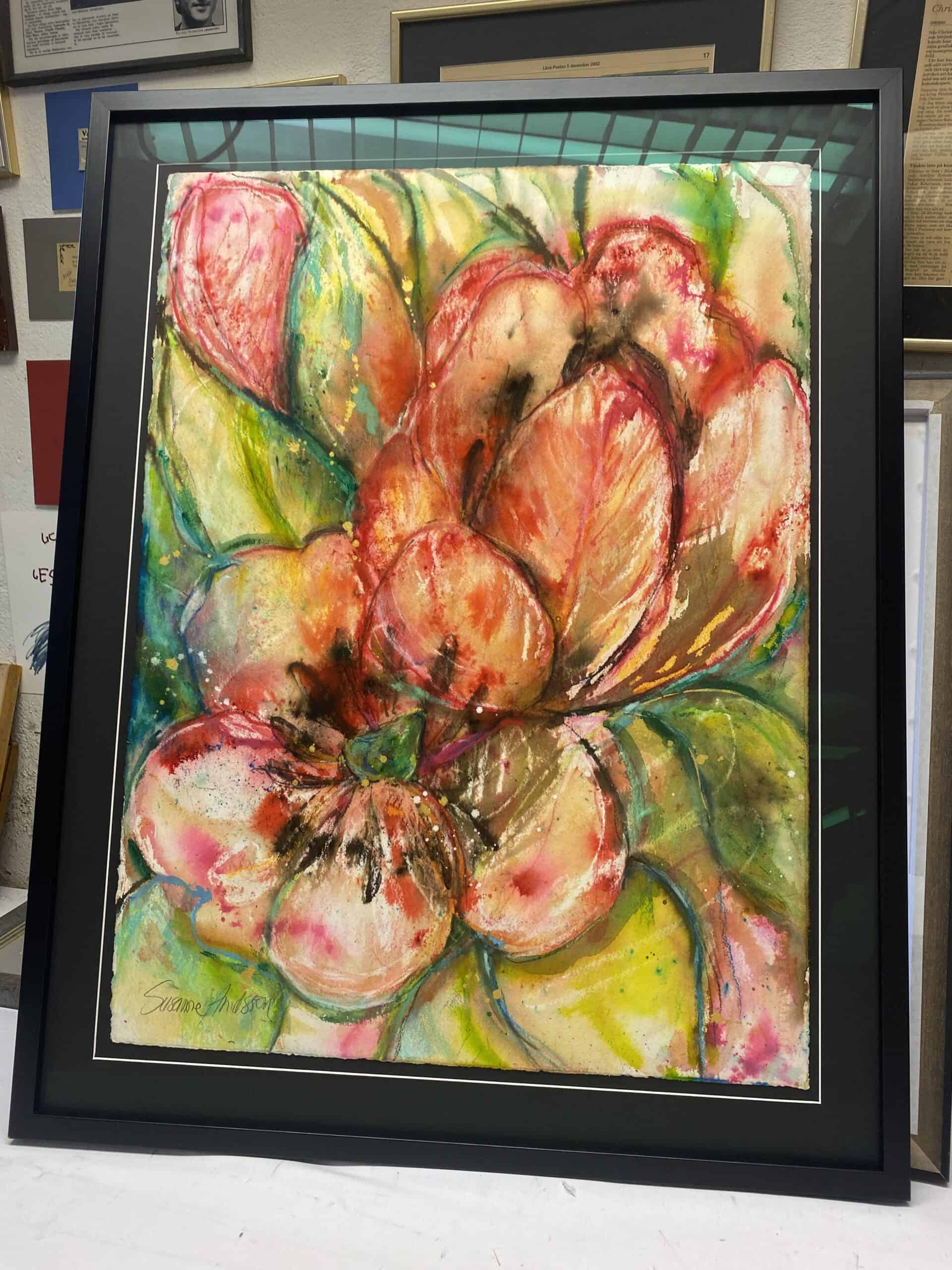 Jag har valt att rama in alla mina tavlor – akvareller – oljemålningar hos en lokal rambutik, vilket garanterar att varje tavla håller högsta kvalitet. Inramningen är både elegant och robust, vilket förstärker akvarellens skönhet och gör den redo att hängas upp direkt. Denna akvarell är perfekt för dig som söker en färgstark och livfull tavla som verkligen lyser upp ditt hem.