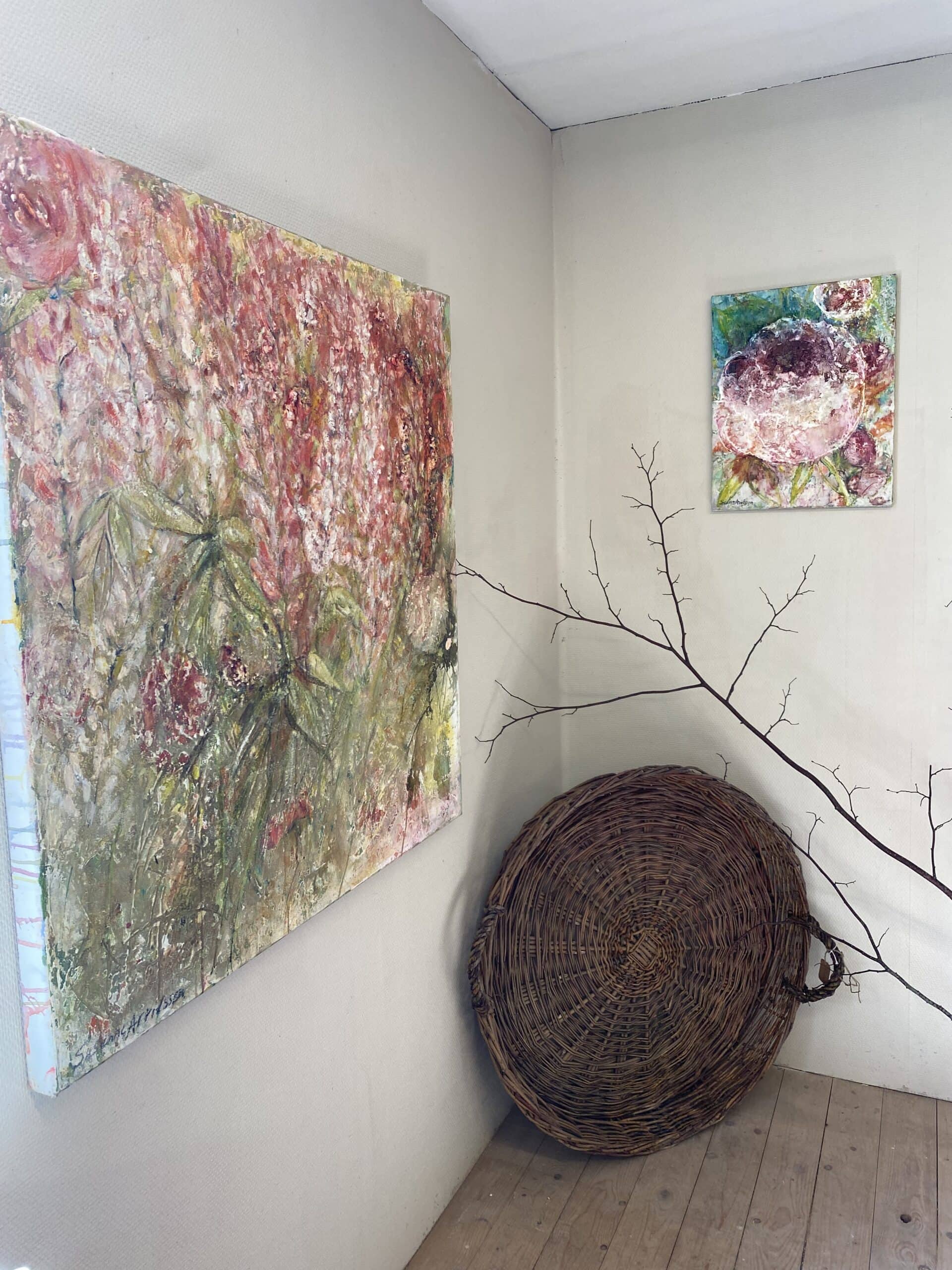 Jag började göra dessa stora tavlor utan kilram därför att jag har många kunder som bor långt ifrån mig men som önskar riktigt stora tavlor.