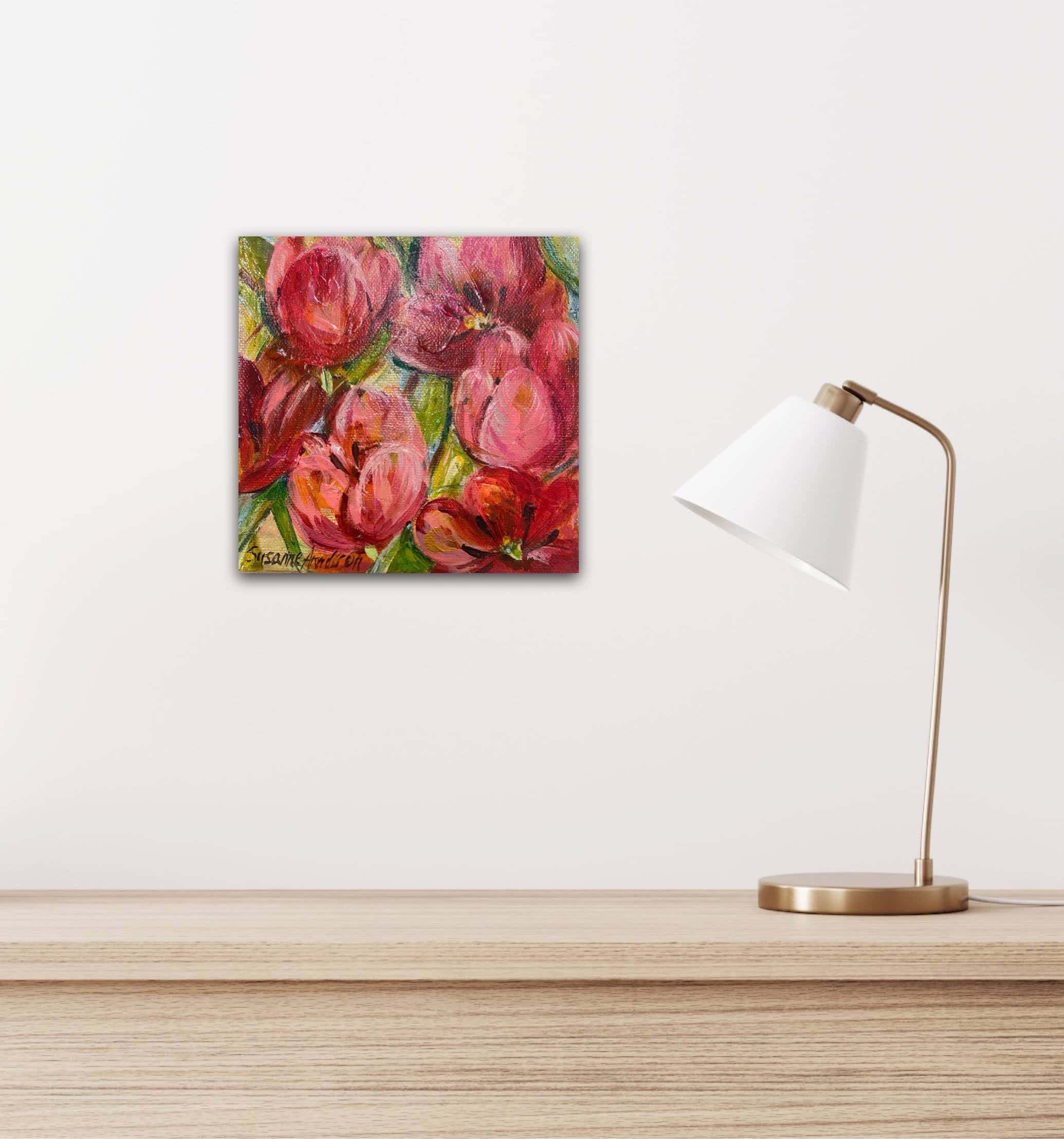 Vår tavla med tulpaner i röd och rosa är mer än bara en dekorativ detalj – den är en investering i konst som förhöjer din inredning och ger ditt rum liv. Med sina levande toner adderar denna tavla både värme och karaktär. Oavsett om du vill komplettera en modern inredning eller lägga till ett färgglatt inslag i en traditionell stil, är denna tavla det perfekta valet.